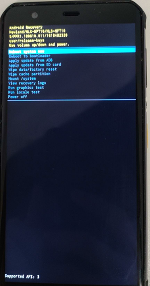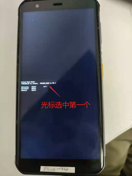 2、 在光标停在[Recovery Mode] 上时,按一下开机键再按一下音量-键,出现开机画面, 等待一会,会进入下图的界面: