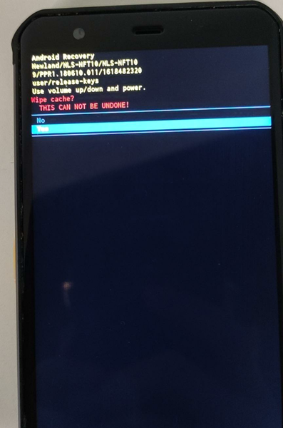 5、 再次按音量减键,选中 wipecachepartition ,然后按开机键进入,再次按音量减键 选 中 Yes,按开机键确认。